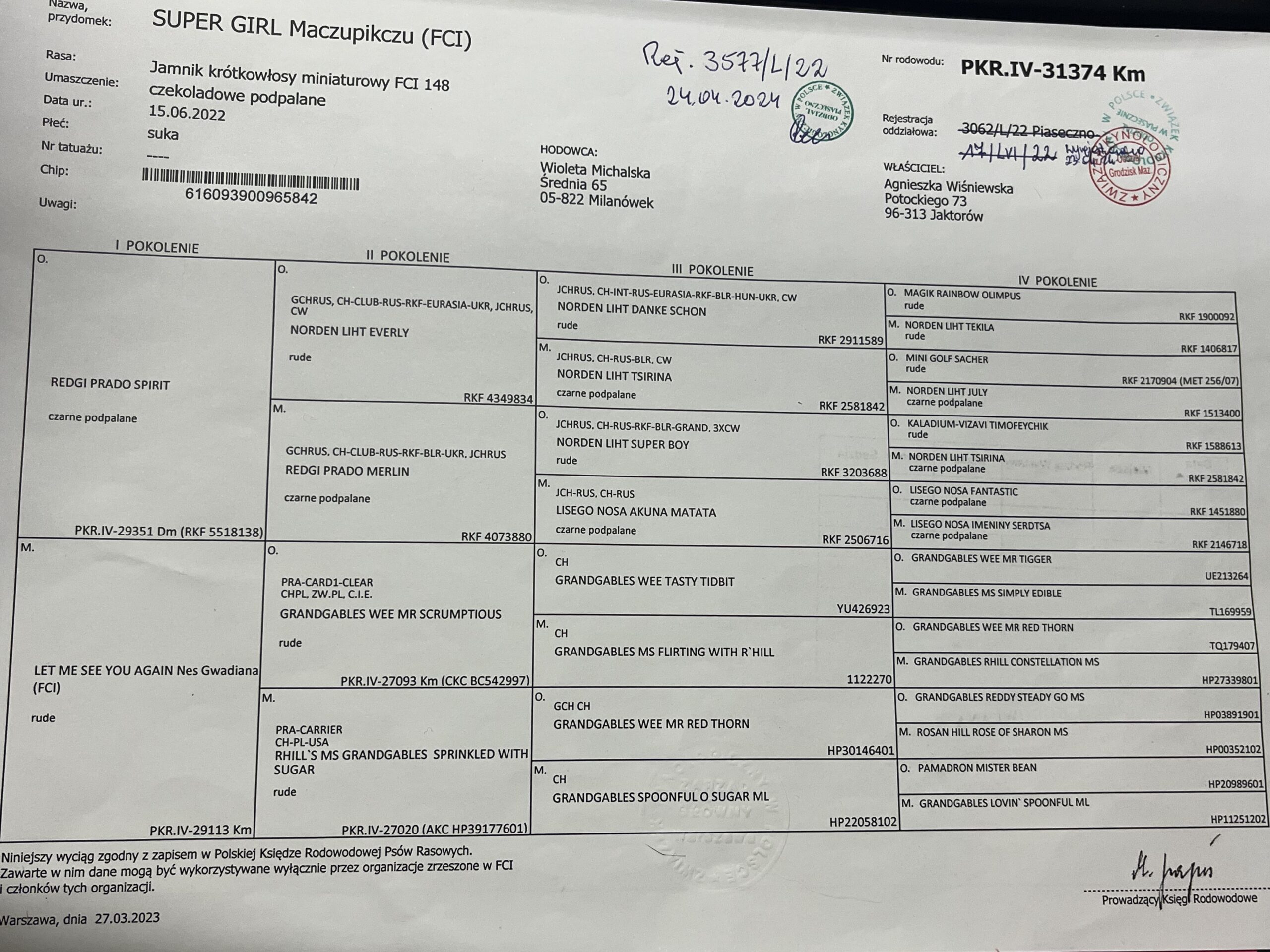 W naszej hodowli mamy suczkę, która w 2025 roku została mamą wyjątkowej suczki Super Girl Maczupikczu – zdobywczyni tytułu Zwycięzcy Młodzieży oraz Zwycięzcy Rasy. To spokojna, zrównoważona i opiekuńcza matka, która doskonale przekazuje swojemu potomstwu nie tylko wygląd, ale też charakter.
